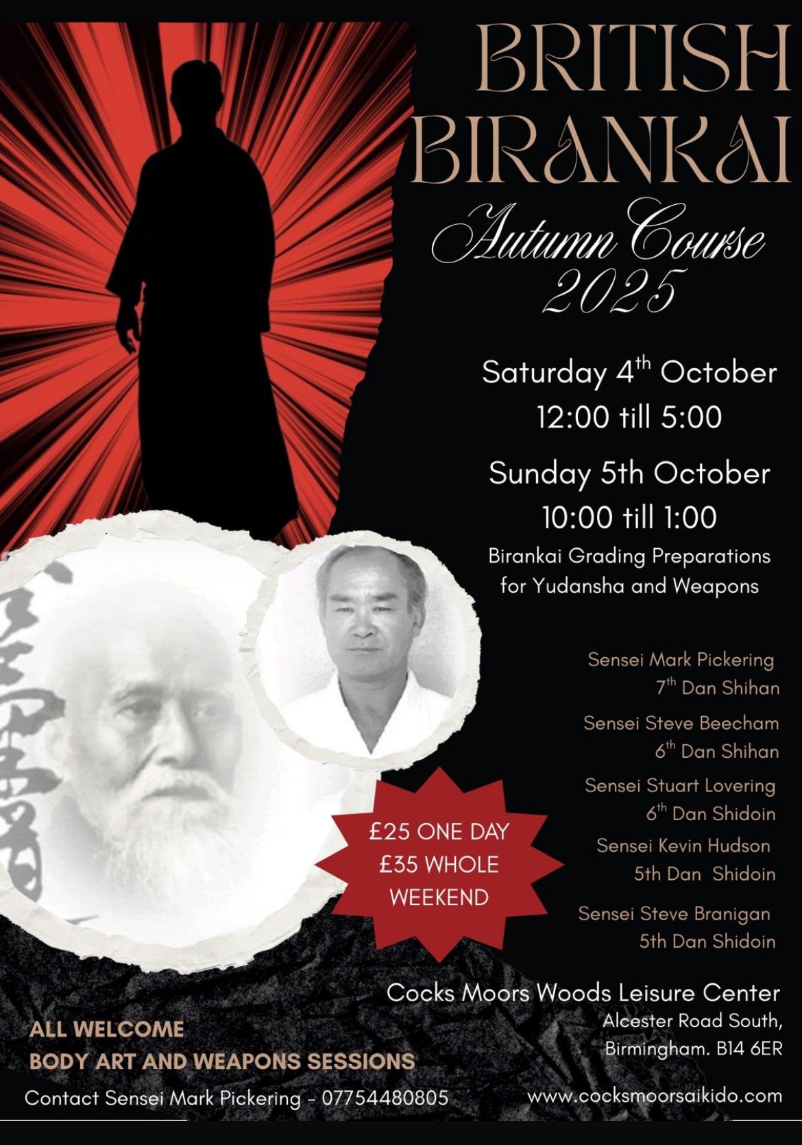 The British Birankai Aikido Autumn Seminar will be on Saturday 4th October 2025 12.00-5.00 and Sunday 5th October 2025 venue Cocks Moors Woods Leisure Centre Kings Heath B14 6ER
